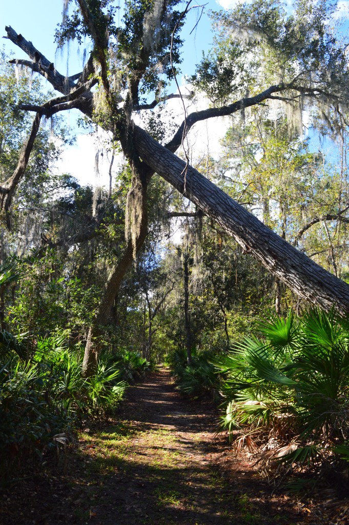 The second hike we took was the longer Lake George Trail. This trail meanders along the spring run beneath hurricane twisted and moss covered oaks through a Riverine swamp. The trail was thick with mosquitoes and muddy in places, but well worth the trip.