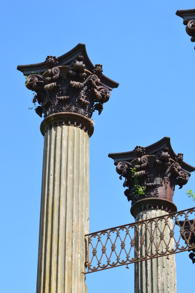 The hauntingly beautiful 45′ tall columns make for outstanding photographs, but I was also drawn to the beautiful metalwork of the iron Corinthian capitals sitting atop of each fluted column.