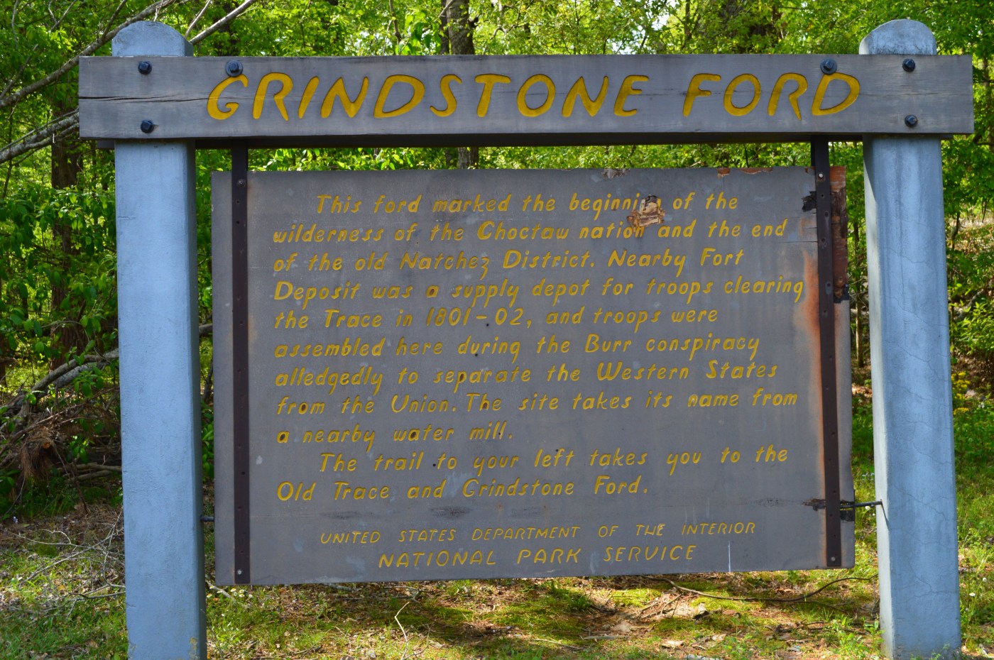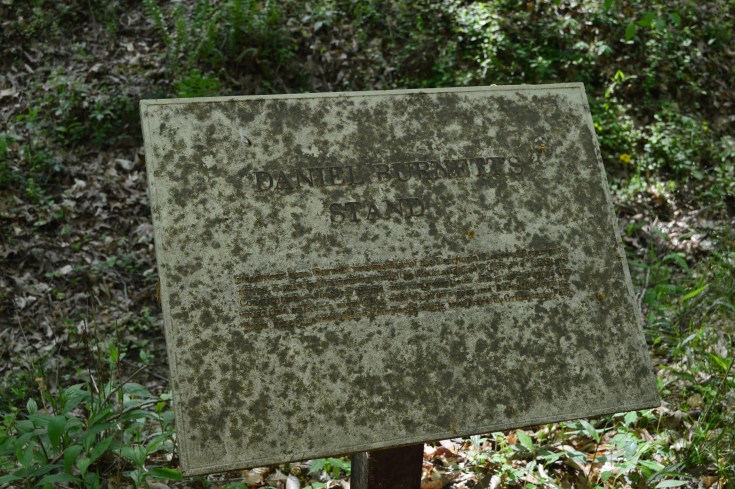 We took the easy .4 mile loop trail through a section of the original trace where a brief informational sign marked the location of Daniel Burnett’s Stand. This marked the last white owned stand on the trace as you head north.