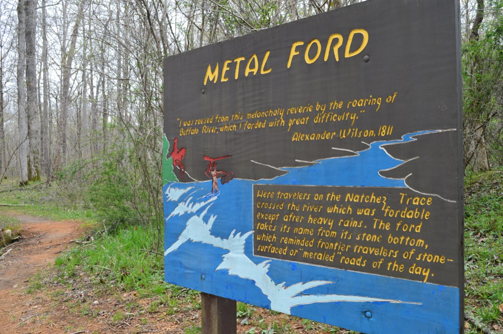 The first is that it marks the spot where travelers forded the wide and fast moving Buffalo River. To find out how the ford got its peculiar name you can read the information on the sign below.