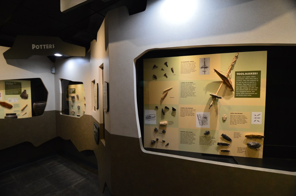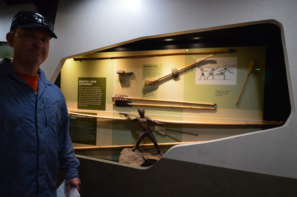 We skipped the 1.5 mile nature trail that is also a part of the National Monument and opted to return to the visitor center for a more careful study of the artifacts uncovered at the site. Mr. McGee was particularly interested in the ATLATL, which was used to increase the range and velocity of hand thrown projectiles. (I have a feeling he’s going to try to make one of these when we reach those retirement years.) The fishhooks fashioned from bone were my favorite.