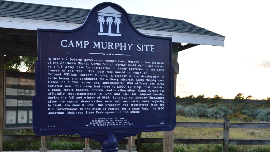 Camp Murphy was a radar training school for the Southern Signal Corps from 1942 to 1944. The site supported around 1000 buildings and 6000 men. Training consisted of setting up and maintaining a radar, along with basic radio repair, first aid, and chemical warfare.