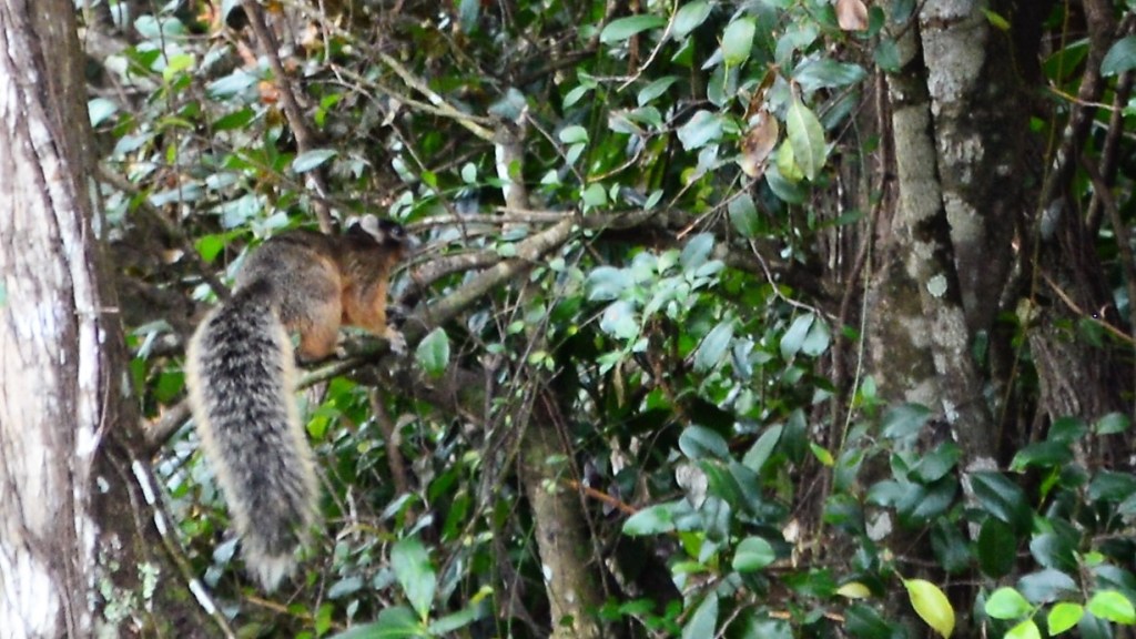 We were thrilled to catch a glimpse of the Big Cypress Foxtail squirrel. This squirrel lives in the swamps and forests of Florida, where it uses its long, bushy tail to balance on branches and communicate with other squirrels. The Big Cypress Foxtail squirrel has a beautiful reddish-brown fur that blends in with the autumn leaves. It also has a white belly and a black stripe along its back. The Big Cypress Foxtail squirrel is very smart and curious. It can solve puzzles, find hidden food, and even use tools to crack nuts. It loves to eat acorns, pine nuts, berries, and mushrooms. The Big Cypress Foxtail squirrel is a friendly and social animal. It lives in large groups called colonies, where it shares food and nests with its relatives.
